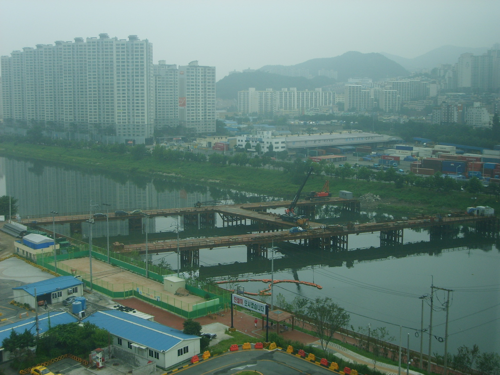 수영4호교 공사용 가교 준공 |